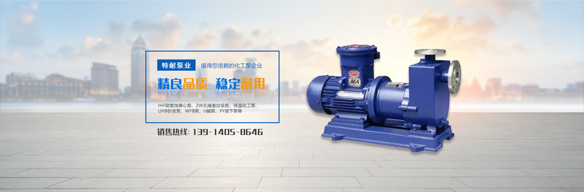 主要產品有:IHF耐腐蝕離心泵,ZW無堵塞自吸泵,保溫化工泵,UHB砂漿泵,WFB泵,IJ堿泵,FY液下泵,SPP化工混流泵,FJX強制循環泵、FSB懸臂式氟塑料合金離心泵、HJ型系列化工流程泵、AFB型耐腐蝕離心泵、IHF型氟塑料合金離心泵、IH型化工離心泵、WFB型無密封自控自吸泵、ZXB型氟塑料合金自吸泵、TNFB型耐腐蝕自吸泵、TNTB同步排吸泵、YL壓濾機專用泵、各種泵用機械密封等。